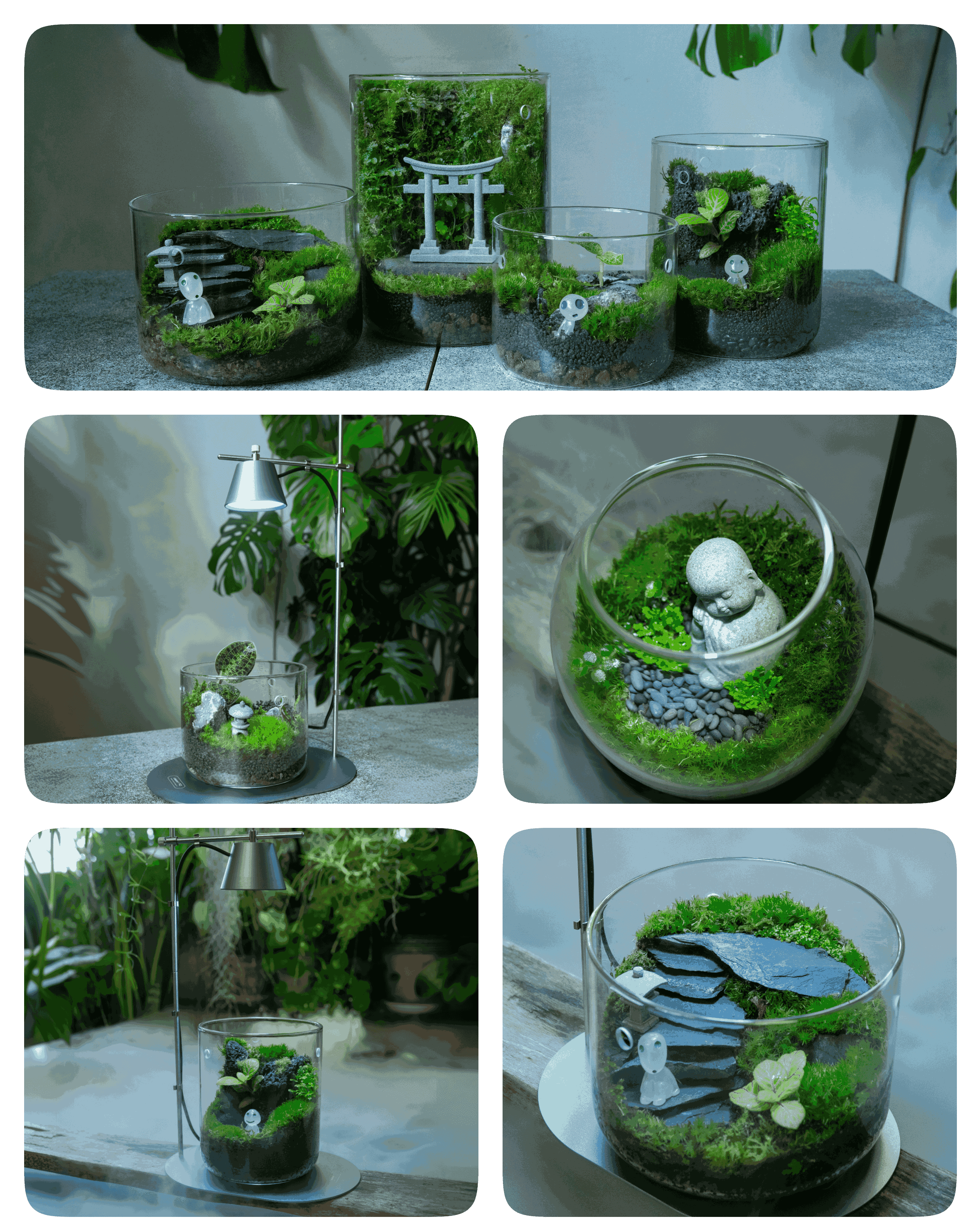 Благодаря уникальной технологии, экосистема не нуждается в специальном уходе, она устойчива к сквознякам, низкой влажности и редкому поливу, делая заботу о них легкой и приятной.
